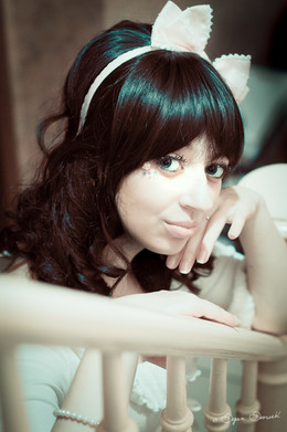 I kind of imagine her as the creepy doll type that you always see in horror movies.