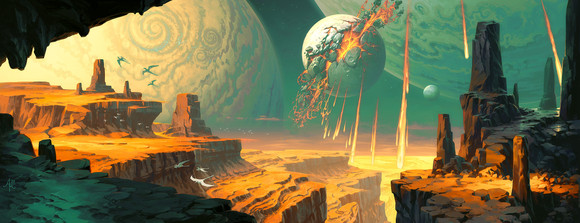 Удивительное дело: при самом первом взгляде на картинку, возникает единственная ассоциация: Кир Булычев. Позже, когда начинаешь просматривать комментарии, понимаешь, что автор соотечественник и, по всей видимости, иллюстировал какое-то произведение замечательного писателя. Наверное менталитет, школа, воспитание советской фантастикой... Спасибо за потрясающую работу, долго рассмативал, получил заряд положительного настроения на день