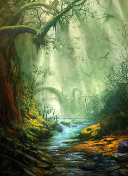 Безумно обожаю эту работу! Хоть и знаю, откуда она, но навевает почему-то болотистую землю замков Крепость из "Героев3" XD