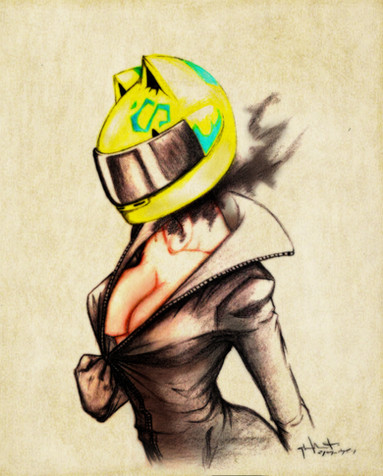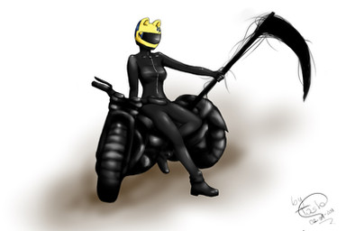 I watched Durarara!! recently and I loved it. Had an itch to draw Celty.The decal on her helmet wasn't easy to do because I found that the animators were a little inconsistant with it at times...