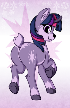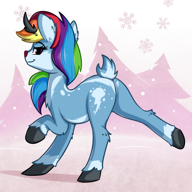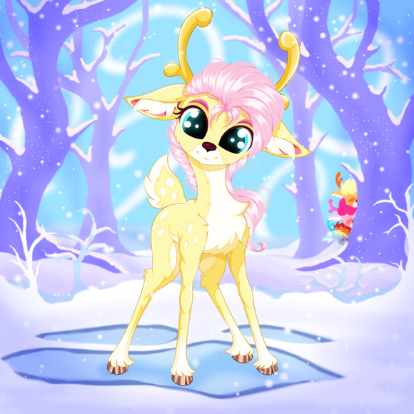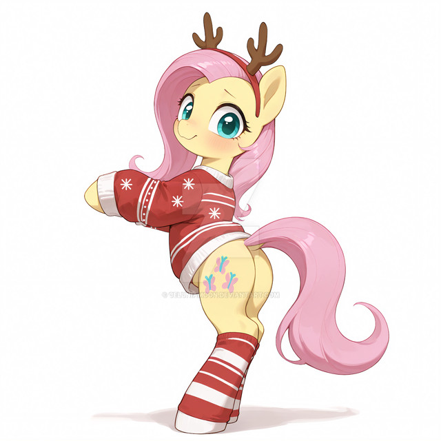 #mlp #pony #mylittleponyfriendshipismagic #fanart #deer #blushing #butt #fluttershy #horns #reindeer #snowflakes #rear_view
