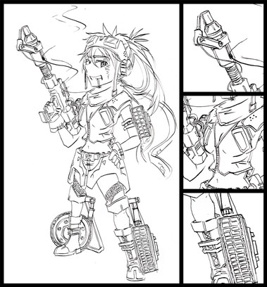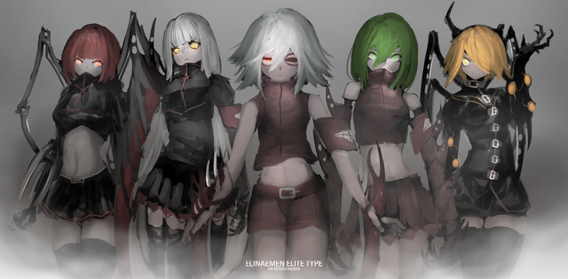Left to right is : Parasite . Insect . Half machine . Armed Figuredraw this four girl at the same time ~my brain feel awsome~and my hand feel paaaaain~~XD