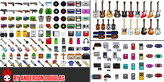 Hey guys!I worked on these sprites recently, and I decided to post after a certain amount, many guitars inspired by my favorite game GH, and others because I'm a musician, I'll probably be working on other models but I think I already have a good amount to post.