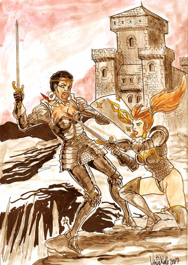 My drow character from my High Rollers pic. A member of the mercenary band known as the Jagged Blade and assassin for hire.Another experiment using acrylic on board with digital tweaking. A lot of colour correction was required in Photoshop because cameras seem to have trouble dealing with the texture of the board and scanners were useless when I tried them.