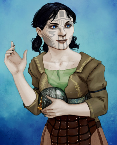 Wowowowow, the detailing in this! I'm in love Seriously, you have a very good eye for the little things, and they really work so well together in this picture. Those stiches, the henna, down to her fine rope belt. The colors are also very appealing, and I just love the contrast between the blues and oranges :}