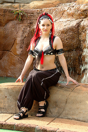 Great costume. I love the way the soles of her feet are pressed together. I can think of only one thing to go between them hehe. Great pic.