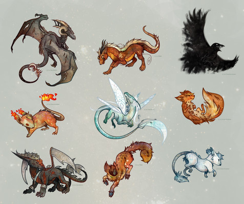Ferret & dragon, but I took extreme creative liscense on what aspects of a ferret to use when I created Story so yeah- most people think Story is a canine dragon, T_T