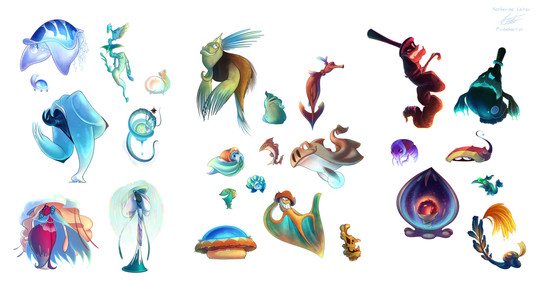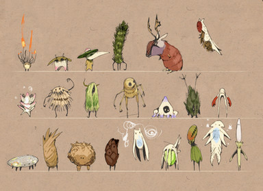 Whoa, nice designs! I really like how you incorporated the different themes into each one...That ivy-looking one is pretty great :'D. Nice job making them look pathetic, too; I can totally envision how they might scurry about! Ehee, and little floating brains~
