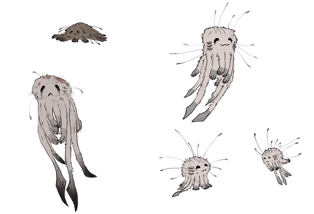 But ohgod I think that hand-shaped monster/enemy is my fave out of them all. It fits a little awkwardly with the rest of them though (I blame the lack of itty bitty point feet) but maybe if the ends of the fingers tapered to claws or something ridiculous like that to keep with the blob-supported-by-tiny-limbs feel the rest of them have?