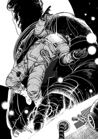 I want to say, I am int he love witht he shading on the area around th elbow of the left astronauts right arm. Its very swoopy and nice looking, like melting mercury. Hoenstly his whole right arm is done perfectly. so is the right astronauts left arm, but its just shaded differently. Your contours are perfectly executed, and I love it. again, great job
