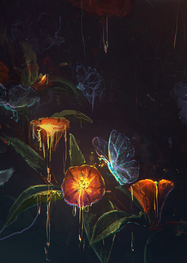 A Really stunning artwork!the colours are so calm, and the details of the flowers and bugs make it more realistic yet mystic. Really beautiful!