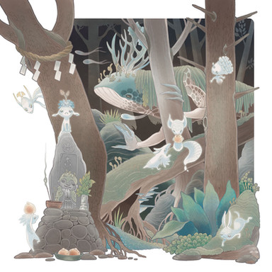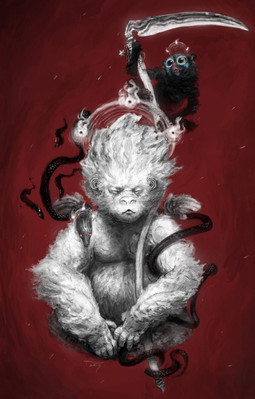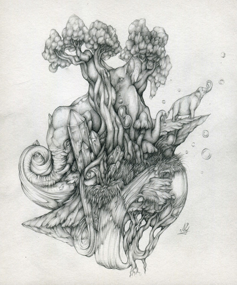 I didn't have a solid concept when I sketched it out, but it took on a very "Everything is connected, all are one" kind of feel after finalizing the linework. I'm personally fascinated with Buddhist culture, so I could'nt help but put a little monk in there. c: