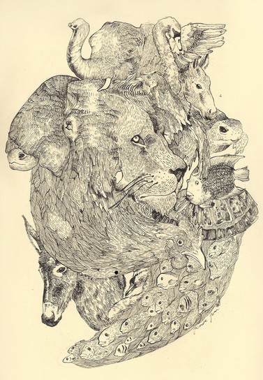 This piece was EXTRA DIFFICULT because of all those animals. It really improved my skill in values however, so I don't regret making it in black and white. c: