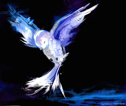 oooooo, this looks so cool! i love how his tail looks all feathery and swishy lol i like the little orbs of light coming towards him at the top too!