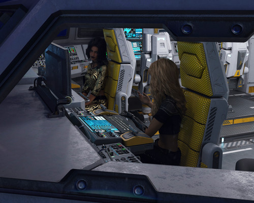 Danel and Brista at the controls of the shuttle.