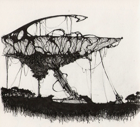 Love the fact that the darker heavier shapes appear to droop down, while the thinner, branch-looking objects are just floating!