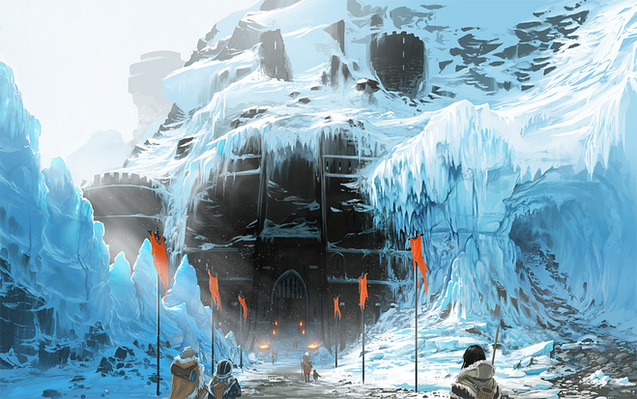 Good stuff! Really like how you layered the snow on the rocks. I would love to see some subtle environment particles flying around; for example, some snow being blown off the large rock outcrop on the right, perhaps give one of the characters a banner that seems to be whipping in the wind, snow blowing through the valley. These are of course really minor details, they're just some ideas about how you could add some more life to the scene