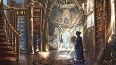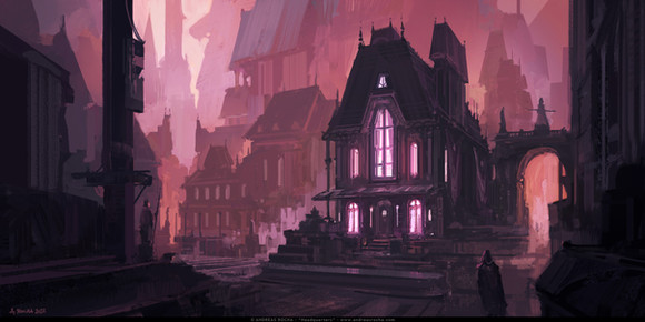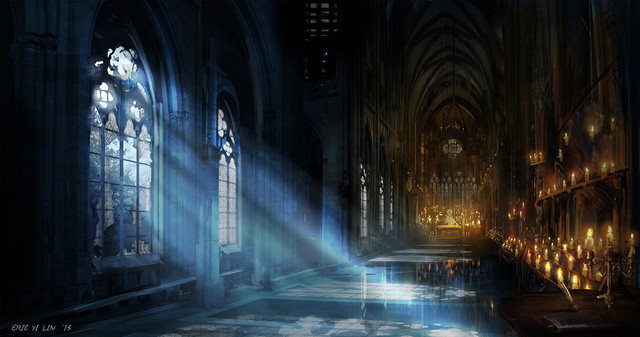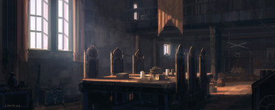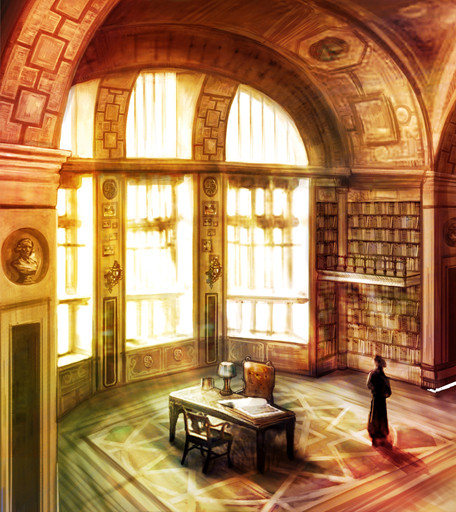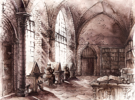 I guess I don't tend to see a lot of smaller(ish) interiors when artists do fantasy art; it's usually broad landscapes or a throne room or a cavernous ritual chamber, so maybe that's why some people glomped onto this one? Good perspective, nice lighting, looks like a long-standing, opulent building, and could be an interior for various genres. Good job! ^_^b