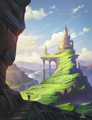 I can almost feel the slight chill from being in the shadowed area as the sun is coming up - this piece is absolutely gorgeous, I love how the colours shift from wild to spring and pastel the closer to the castle we get. Lovely work!Β