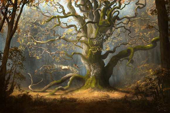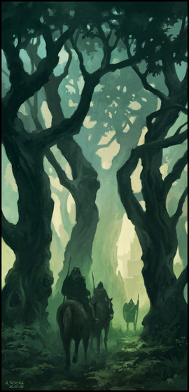 Commissioned painting. The aim was to portray a magical forest. I drew inspirations from a lot of places but I believe Fangorn and Sintra, fictional and real, are what influenced me the most. I love forests...fantasy is inherent to them. I don't know if it's the green tones, the wind blowing through the trees or the fresh air...there is just something special about them.I also took a lot of inspiration from the beautiful paintings by master painter Peder Mork Monsted