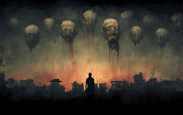 #apocalypse #axe #city #clouds #creature #dark #digitalartwork #digitaldesign #digitaldrawing #digitalillustration #digitalpainting #evil #eyes #fantasy #glowing #ruins #scifi #silhouette #smoke #tabletdrawing #tabletpainting #undead #wacom #zombie