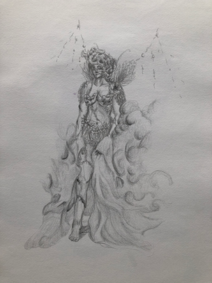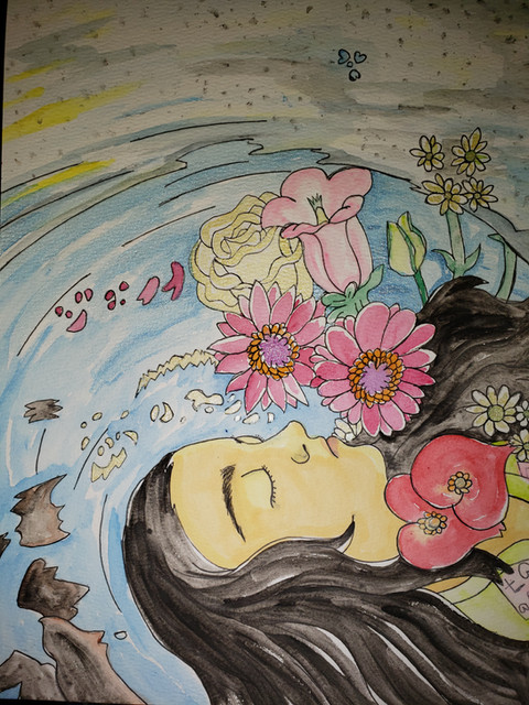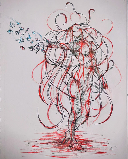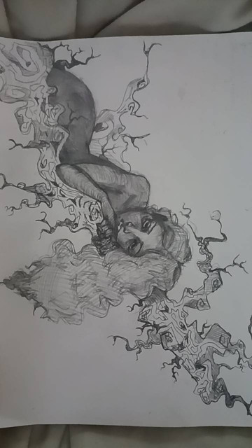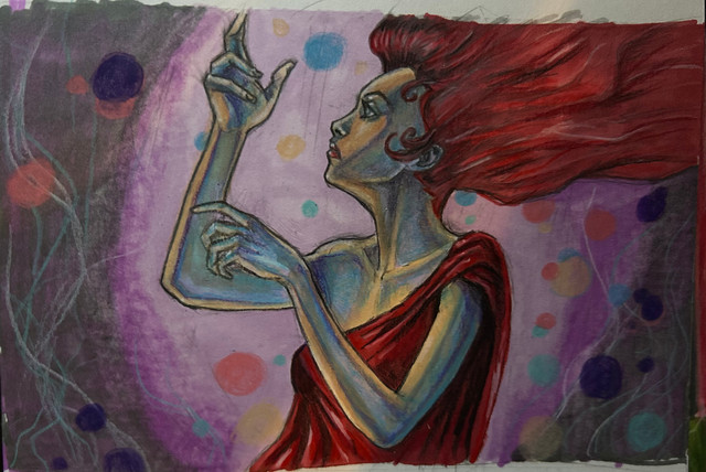 #blue #fractured #gold #graphitedrawing #hairstyle #pencil #portrait #portraitgirl #red #traditionalart #wavyhair #drawingtraditional