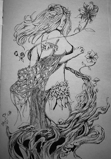 #dress #flowers #mist #pencil #portrait #portraitgirl #characterdesign #fantasyart #graphitedrawing #originalcharacter #traditionalart #drawingtraditional