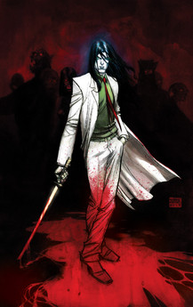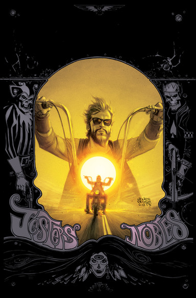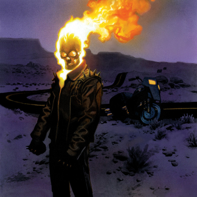 The eerie glow from the headlights in the background is so slick, but man... the Ghost Rider stance, head tilt, and lighting of the skull are amazing. Great piece.