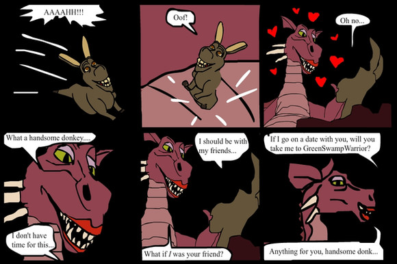 HAHAHA THAT WAS HILARIOUS.AND WELL DRAWN.I LOV SHREK AND DONKEY.GR8 JOB!!!!!!!!!!!