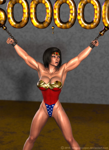 The only problem is this villain or fighter, whoever he is, has made a huge mistake by leaving her legs un-bound, she's only playing possom till he gets close enough, then he's going to catch a giant boot to the sensitive parts that will give her time to get free and win!