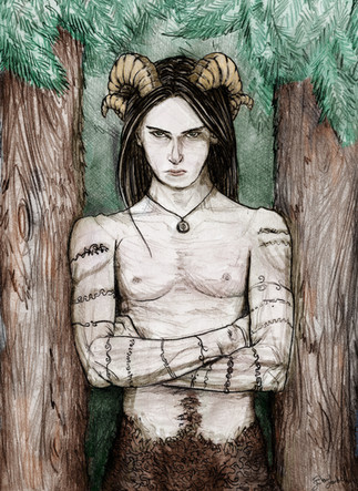 This is my faun Halcyon... Hal for short.The base of his horns are actually lower and fairly thick you just can't tell because of all the hair swirling about his head like a messy hair tornado.