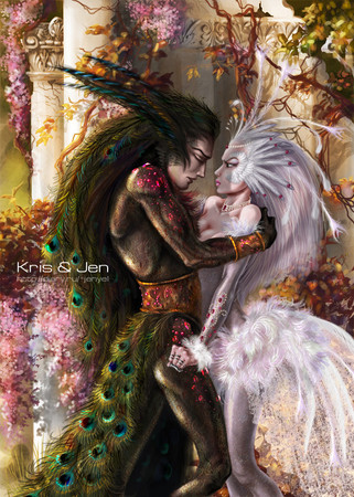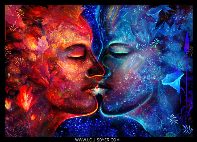 The images are gloriously, magically beautiful β a meeting of night and day, masculine and feminine... but my favorite part is the tenderness in their expressions. Gorgeous!