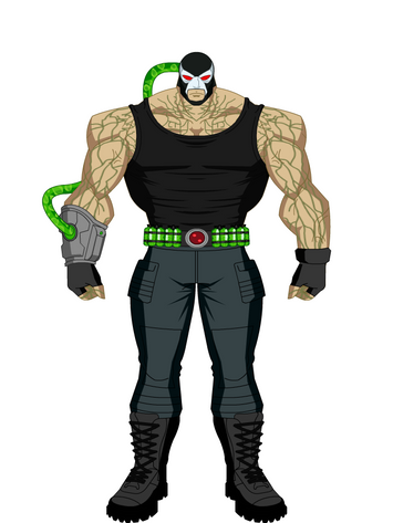 LISTEN I KNOW WE SEE BANE IN BATMAN BEYOND I KNOW HES ALL OLD AND ON LIFE SUPPORT I DO NOT CAREEventually finding a surviving Lazaraus pit, Bane utilizes its power to regain his health and former strength. Now capable of moving around on his own again, he uses a Lazarus infused venom that pumps through his body (hence the color)