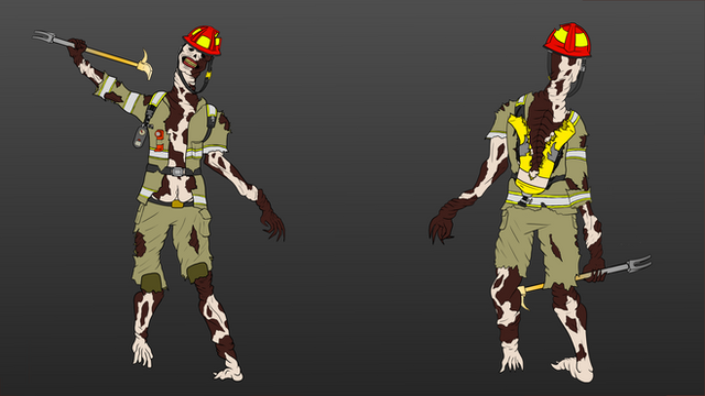 Finally gave this guy the love he deserves, I really love his design sm.Hes a slasher who used to be a firefighter who got injured on the job (sabotaged fire) and the rest is kinda wonkey but either hes cursed or he just went crazy and started burning places and setting them on fire sjdfkdsjf