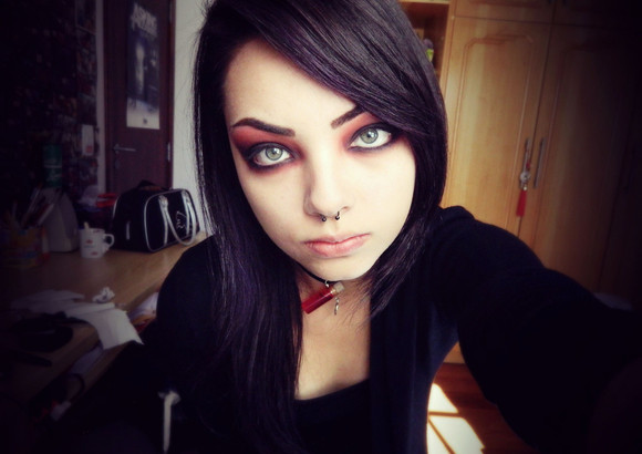 I felt like protecting my neck from a vampire bite when i saw this! haha...but i give it to you, you definitely rockin the goth look