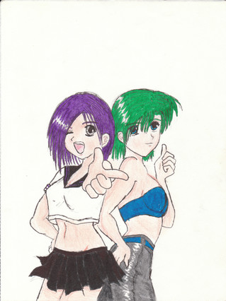 ooo the girl in the black hair is cool! *envy admire envy admire* I miss osaru though. could you draw him? pleeeeeeeeaaaaaassssseeee? *pitty face* please? good work on this picture though! i like it! *fav*