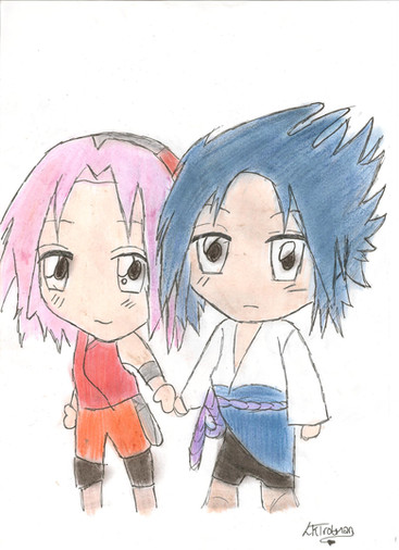 this is a sasutema pic i did in school9 notice i used colors this time!) using a base, [link] man i need to start drawing stuff on my own...Related content