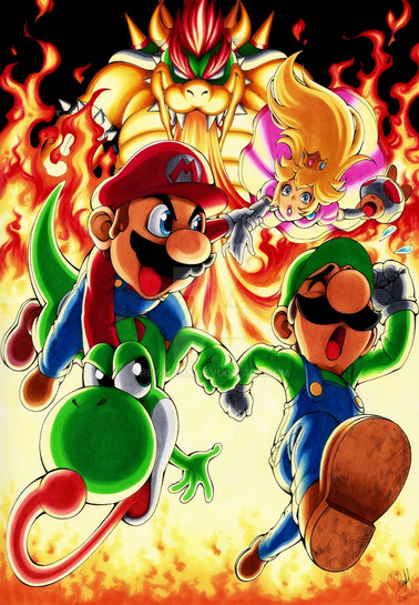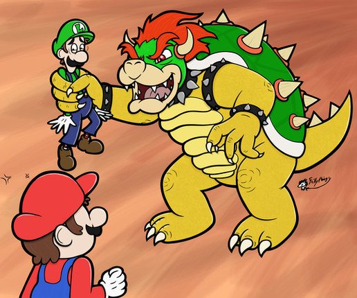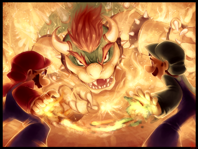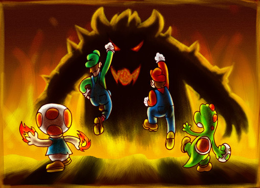 #afraid #boss #brave #fear #fight #games #luigi #video #yoshi #art #fire #vs #bowser #illustration #videogamefanart