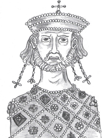 Sketch of the last emperor from Heraclian dynasty, Justinian II. the Slit-Nosed,who reigned from 685-695 and 705-711.Related content