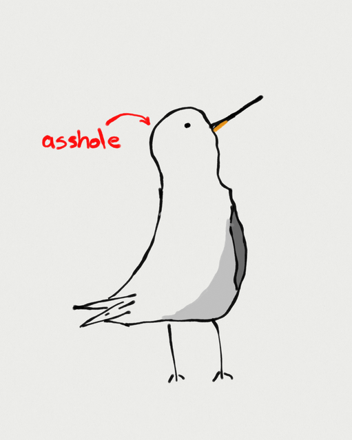 Poor seabirb, it doesn't need the bullshit brick thrown at it in its innocent birb life. ; v ;