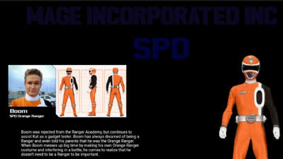 A database-like image for Boom, as the orange SPD ranger.I like folllowing the suggestion that, after Grumm was defeated, Boom may have become a real ranger.