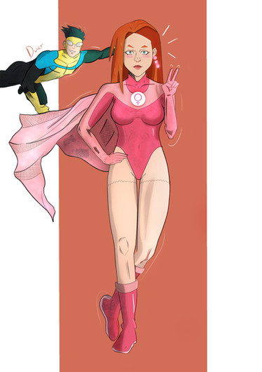 A little doodle for a challenge over on Project Rooftop. I love Robert Kirkman & Cory Walker's Graphic Novel 'Invincible'. It's action packed and has some of the greatest Hero names on earth. It's all you need in a comic.I was playing about with lineartlessness again. whoops.