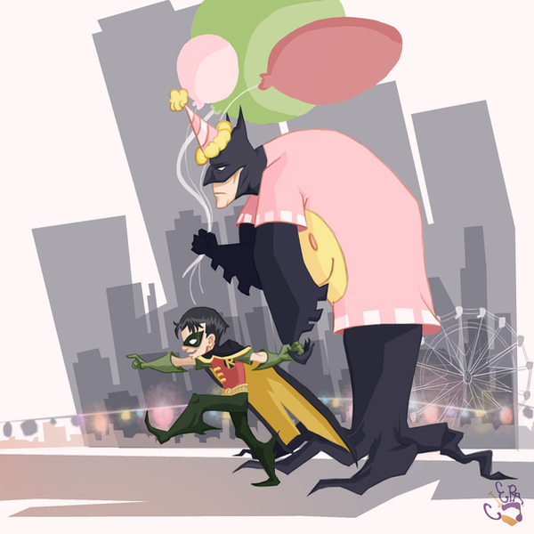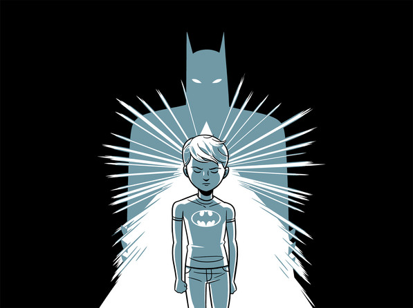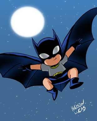 I like his home made bat signal. Also the little bat ears are a nice touch, they're big enough for you to realise it's Batman, but not too big that they distract from the hero-kid concept.