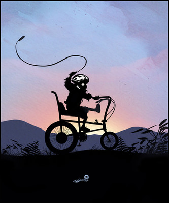 Very gorgeous piece of artwork. I love the connection between light (the flashlights) and the Flash. Along with the silhouette style, it is a wonderfully haunting piece.