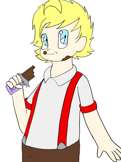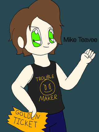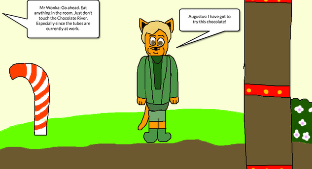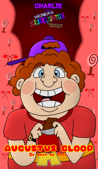 Bio: Augustus loves to eat 24 hours a day, especially chocolate. He is always seen eating a chocolate bar and this is why he never speaks. When the golden ticket announcement came, Augustus increased his eating habits. One day, Augustus was eating his daily chocolate bar when suddenly, he felt something strange in his mouth. It wasn't coconut or caramel or walnut or peanut butter. It was a piece of the Golden Ticket! Augustus was so excited and couldn't wait to go to the factory! Once he arrived with 4 other children, the met Willy Wonka and the tour began. They went in the chocolate room, Augustus could not believe his eyes! There was everything that was made of candy but what amazed him the most was the chocolate river! Augustus ran over and cupped his hands in the chocolate river! Willy Wonka warned him to stop but then Augustus fell in! His mother freaked out and demanded Willy Wonka to get him out, but it was too late! The pipe came and Augustus got sucked up. The Oompa Loompas sang a song about him and got him out of the fudge room. Augustus was completely covered in chocolate and he kept licking the chocolate off himself to his delight but his mom decided to make him stop his eating habits.