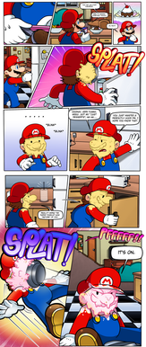 I don't know, I think the joke would work if there was a panel of Mario cleaning up the mess before panel #2 and knowing the Squid Kids messing it up right after he just got done.