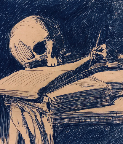Andy B. Rodriguez Art “Daredevil” Sept 2023, pen, ink, and marker on tan toned paper, 9x12 in.