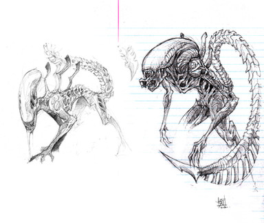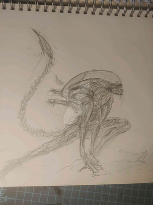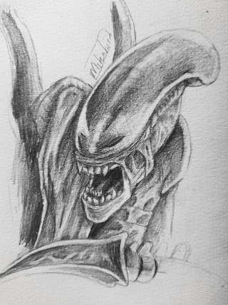 Andy B. Rodriguez Art "Xenomorph" DEC 2023, pecil on paper, 9x12 in.Related content