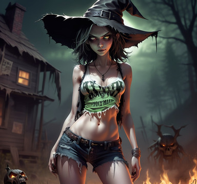#4k #cemetery #goblin #witch #halloween #moonlight #pinkhairgirl #sexygirl