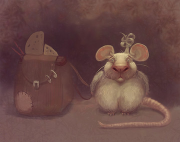 What I really love about this piece is how his little hairs/fur (which does a mouse have?) are sticking out all crazy everywhere. It really gives him some great character and helps the eye move around the composition really well. Great work!
